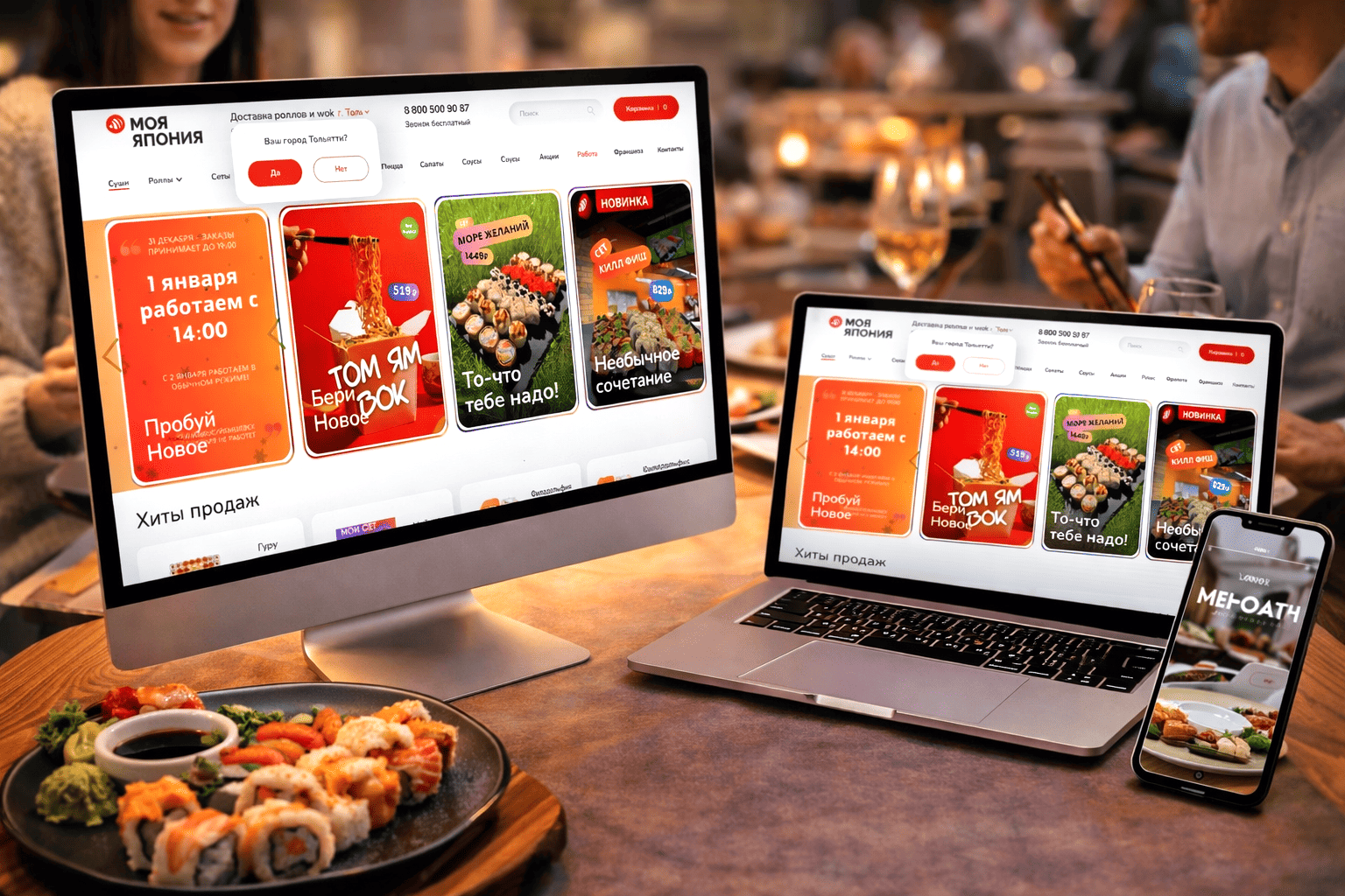1. Лучшие сайты для кафе и ресторанов в сегменте суши и роллов живут по своим законам. Здесь нет места созерцательности и длинным паузам — сайт включается мгновенно, как яркий свет в витрине ночного города. Пользователь попадает не в «историю бренда», а в поток выбора, где каждое блюдо борется за внимание и почти всегда выигрывает.