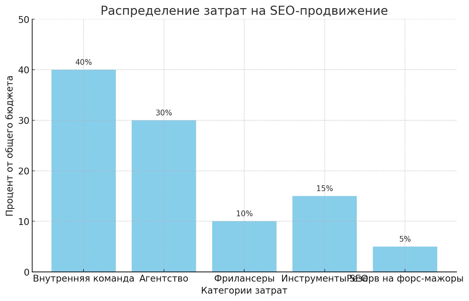 Доход. Рекомендуется выделять на SEO-продвижение от 5% до 10% общего дохода компании. Важно учитывать расходы на другие каналы продвижения для создания гармоничной маркетинговой стратегии.